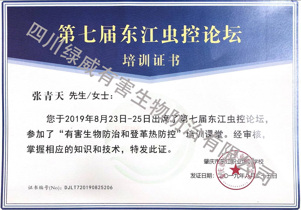第七届东江虫控论坛培训证书