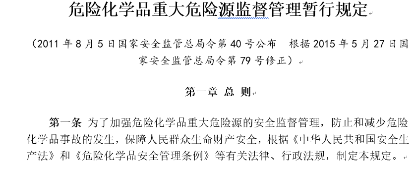危险化学品重大危险源监督管理暂行规定