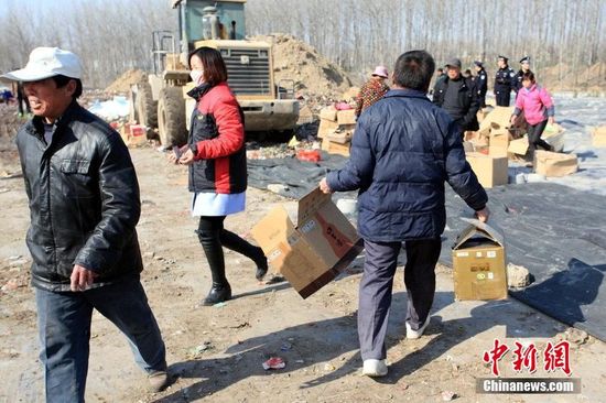 2015年3月11日下午,由市政府统一组织,工商、公安、商务、质监、食药等执法部门联合在市雁群生活垃圾填埋场实施假冒伪劣商品集中销毁行动。……