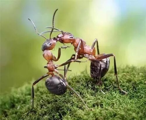 白蚁成虫在分飞落地、脱翅后才雌雄配对繁殖,且长期居住在一起,经常交配。蚂蚁在飞行中交配,且交配后雄蚁不再起作用。